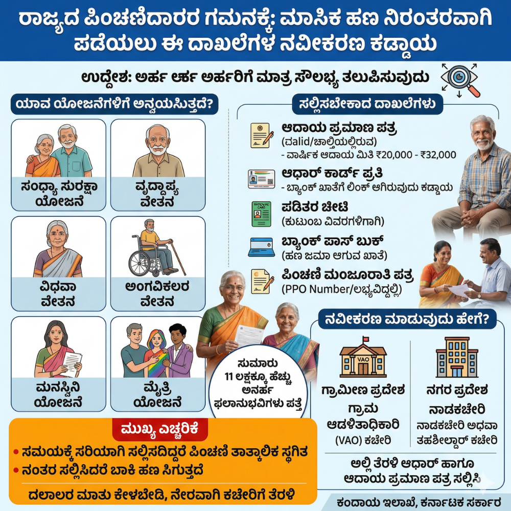 ಈ ಪ್ರಕ್ರಿಯೆ ಸರ್ಕಾರದ ನಿಯಮಿತ ಪರಿಶೀಲನೆಯ ಭಾಗವಾಗಿದ್ದು, ಪಿಂಚಣಿ ಯೋಜನೆಗಳನ್ನು ಪಾರದರ್ಶಕವಾಗಿಡಲು ಹಾಗೂ ಅರ್ಹರಿಗೆ ಮಾತ್ರ ಸೌಲಭ್ಯ ತಲುಪಿಸಲು ಕೈಗೊಳ್ಳಲಾಗುತ್ತಿದೆ.