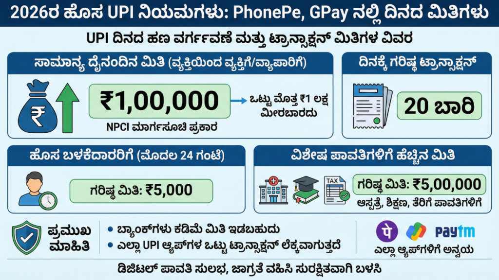 2026ರಲ್ಲಿಯೂ UPI ಬಳಕೆ ಸರಳವಾಗಿಯೇ ಇರುತ್ತದೆ, ಆದರೆ ಲಿಮಿಟ್ ಮತ್ತು ನಿಯಮಗಳನ್ನು ತಿಳಿದು ಬಳಸುವುದು ಬಹಳ ಮುಖ್ಯ.